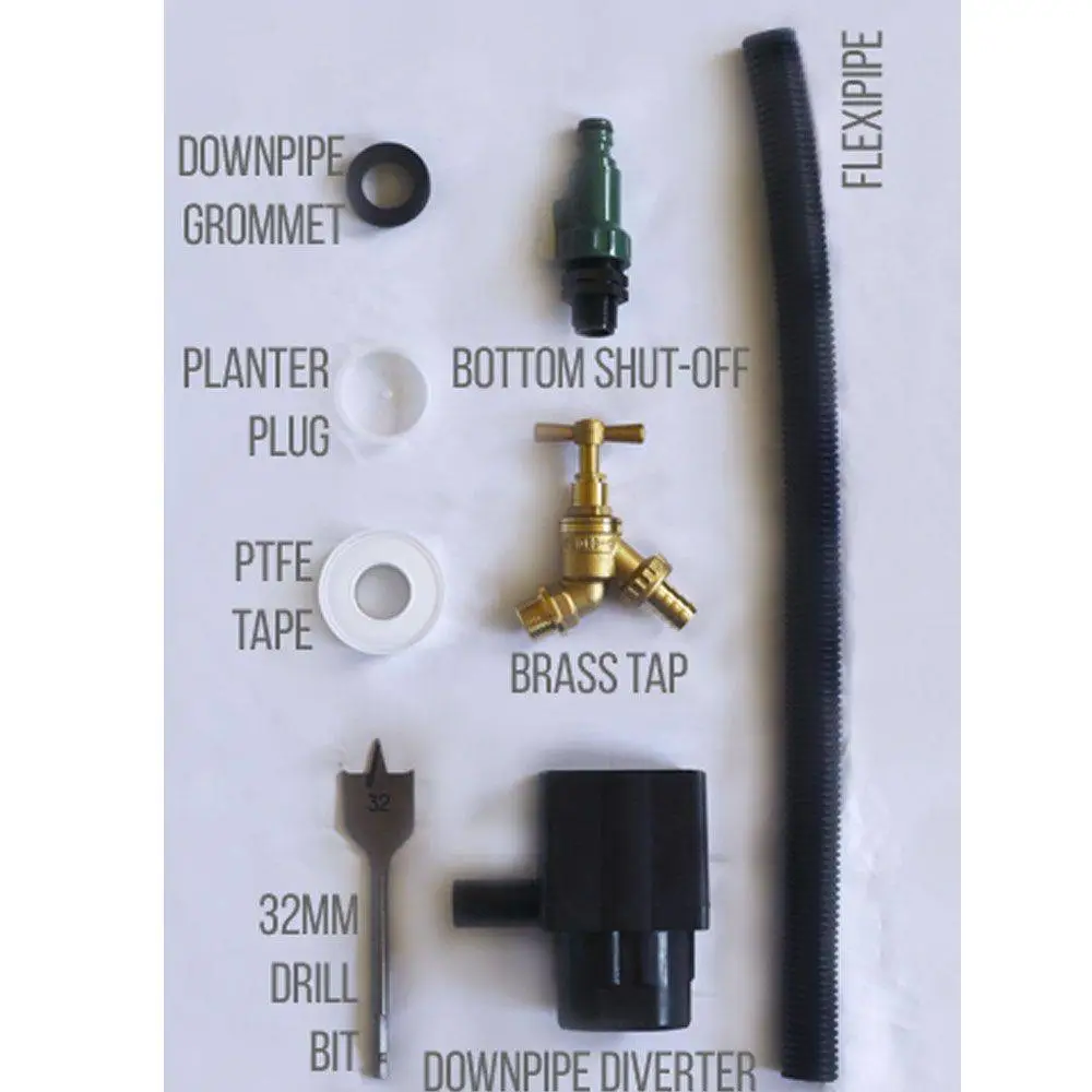 - 1 x standard diverter with hose (for a 68mm diameter or 65mm square downpipe) round with 50cm of hose and a grommet so it can be fitted from the downpipe