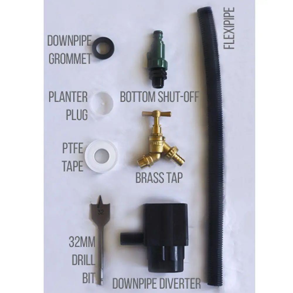 - 1 x standard diverter with hose (for a 68mm diameter or 65mm square downpipe) round with 50cm of hose and a grommet so it can be fitted from the downpipe