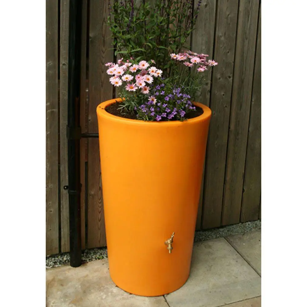 Store and water your garden plants with ease with this 180 Litre Garden Planter Water Butt Orange which gives you the best of both worlds. This conical-shaped water butt is ideal for many sizes of gardens, limited spaces and balconies and includes a free brass tap and diverter.