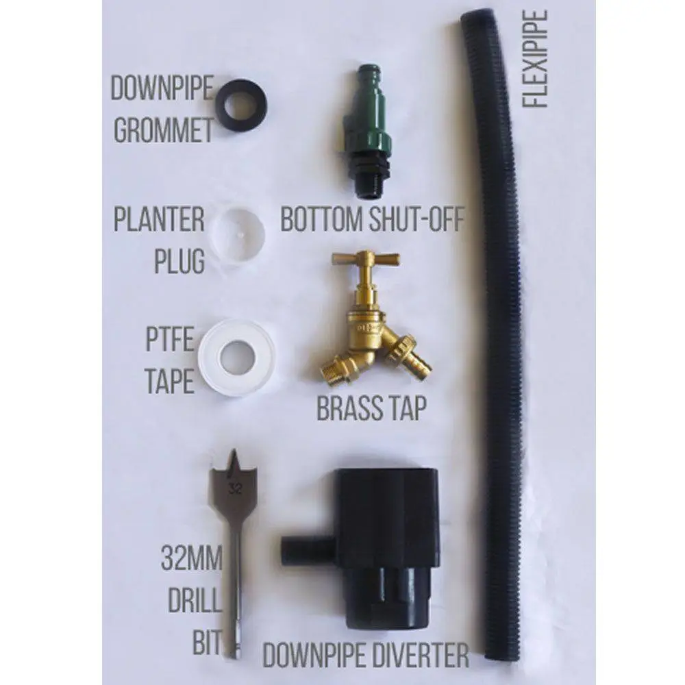 - 1 x standard diverter with hose (for a 68mm diameter or 65mm square downpipe) round with 50cm of hose and a grommet so it can be fitted from the downpipe