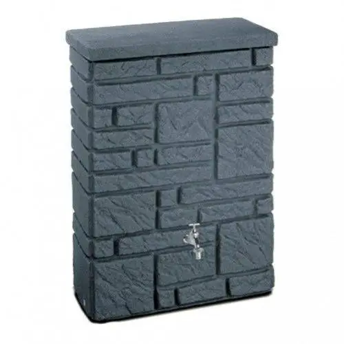 This 300L Maurano Stone Effect Water Butt in Charcoal has an authentic stonewall effect appearance and includes a lid, chrome tap and wall-fixing bracket.