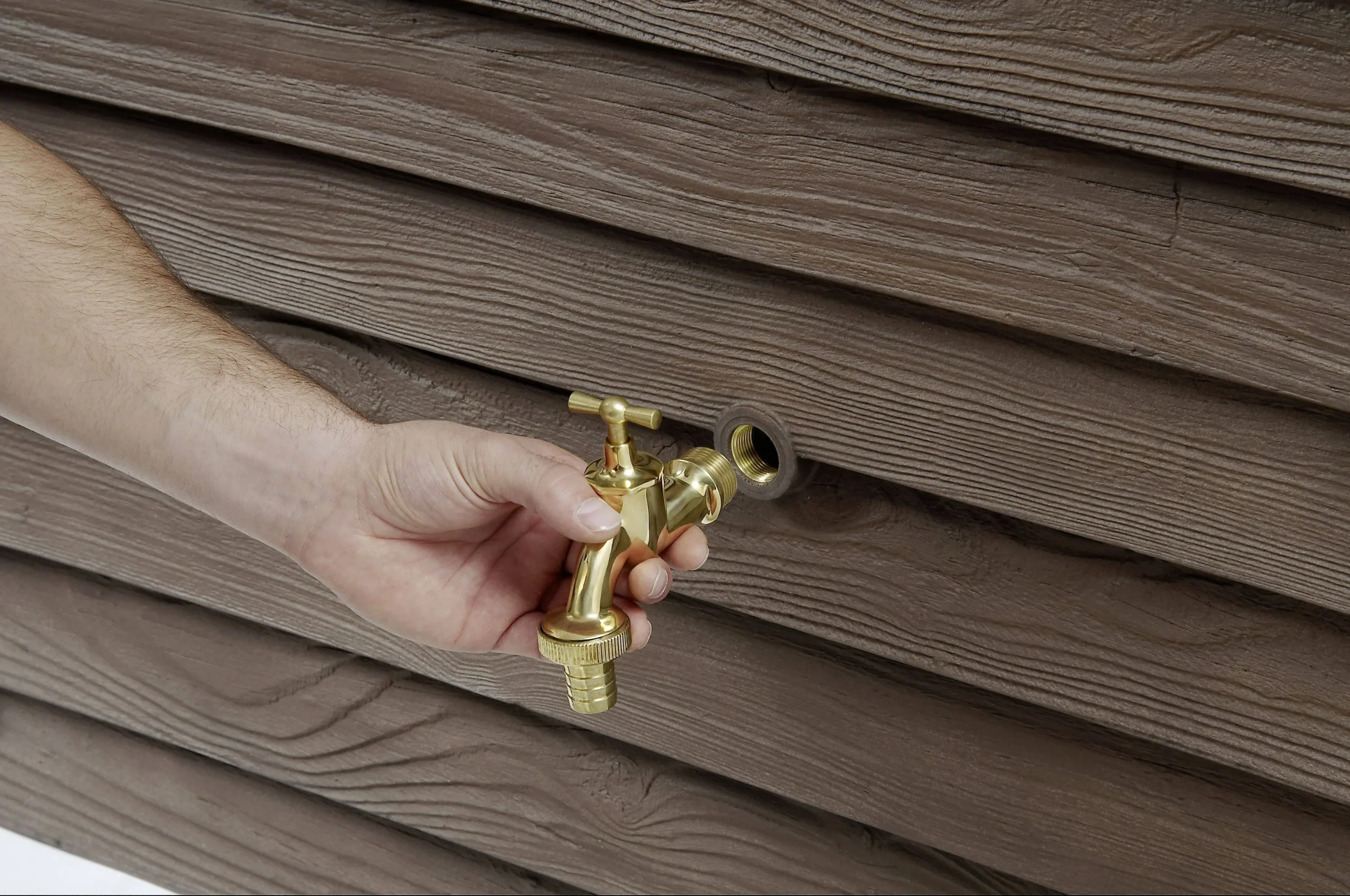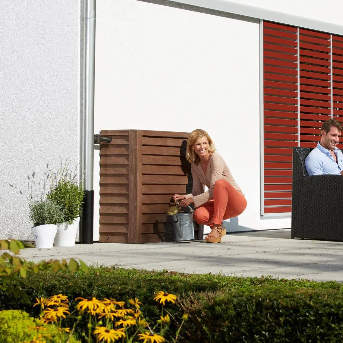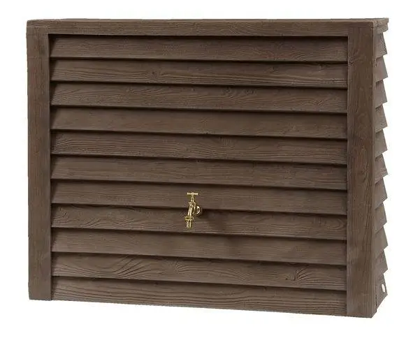 This 350L Woody Wall Tank – Dark Brown will look the part in your garden with its slim design and ultra-realistic wood effect finish. This robust and decorative rainwater storage tank is UV-stable and weather resistant.