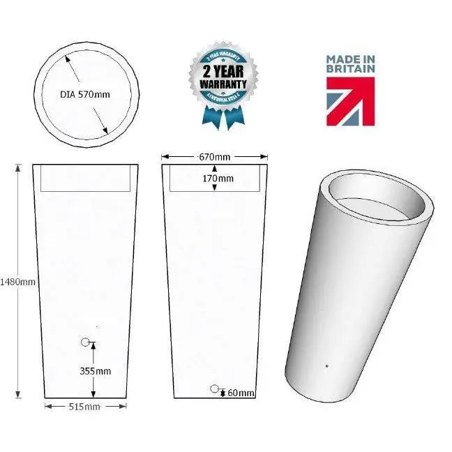 Overall Dimensions: Height: 1480mm Diameter: 675mm